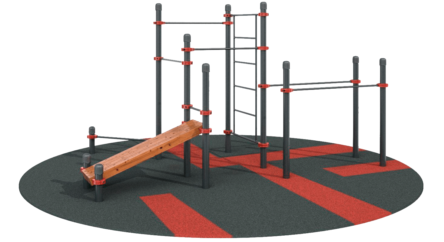 Снаряд дает возможность выполнять несколько упражнений одновременно с собственным весом группе спортсменов либо индивидуально и не требует большого пространства для установки во дворе частного или многоквартирного жилого дома.